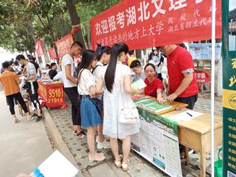 6月25日,晴,艳阳高照,雨后的气温,犹如阳春三月的暖阳,和煦而又温柔。食品·化工公司各个招生点,穿着红色招生工作服的老师和员工们尽职尽责的坚守在招生一线的岗位上,去年才进校的博士教师蔡爽今年主动请缨参加招生工作。