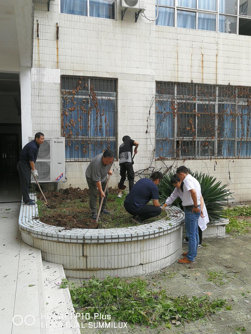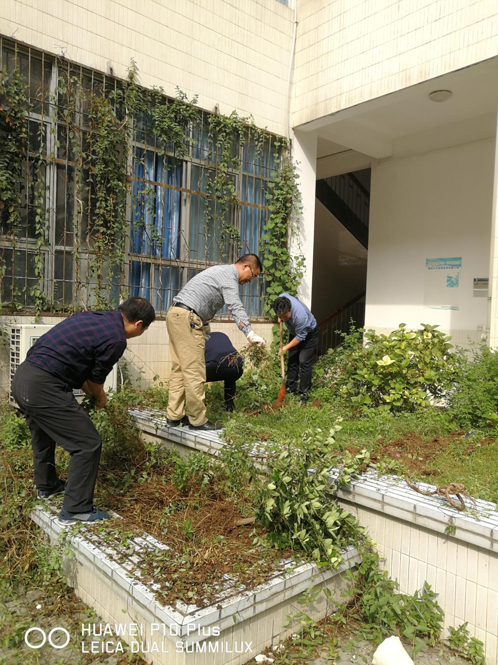 9月24日下午,食品·化工公司N3教学楼院内,食品·化工公司教工和员工4个党支部50多名党员在植物生理学博士孙永林的指导下开展义务劳动,把教学楼内四个花坛重新平整一新。