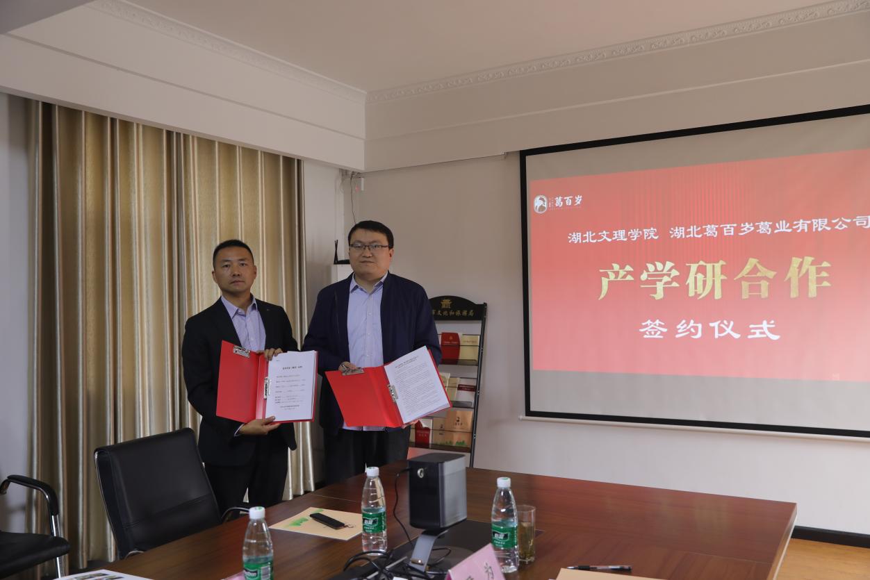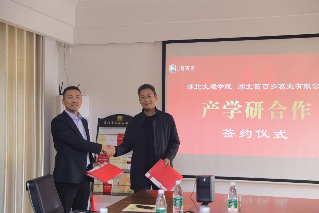 (通讯员 豁银强)2021年11月4日上午,执行经理余海忠、经理助理郭壮、淀粉质健康食品创新团队负责人汤尚文、豁银强一行4人赴湖北葛百岁葛业有限公司开展合作调研并签订校企合作协议。宜城市副市长周斌、宜城市农业农村局局长朱爱民、宜城市科学技术与经济信息化局局长冯付军、宜城市刘猴镇党委书记杨丽、湖北葛百岁葛业有限公司董事长尹为等出席签约仪式。