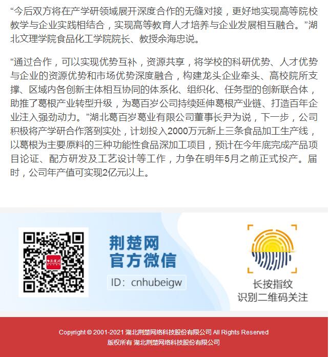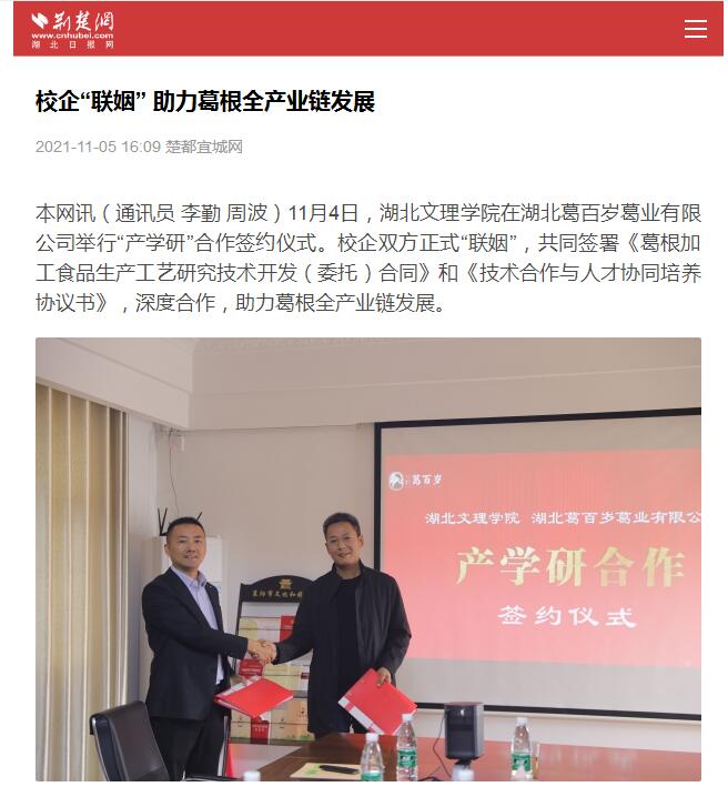 荆楚网报道公司与湖北葛百岁校企合作活动