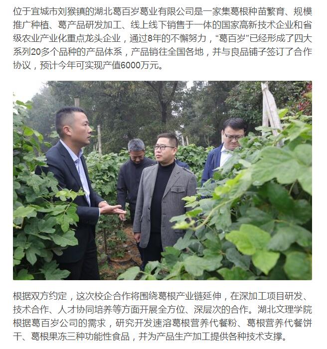 公司与湖北葛百岁葛业有限公司签订校企合作框架协议
