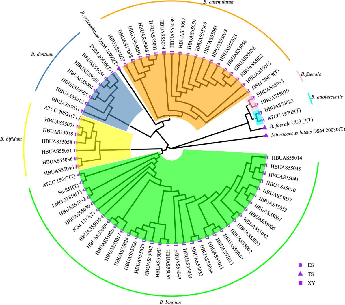 1 襄阳和恩施地区老年人肠道来源双歧杆菌的系统进化树