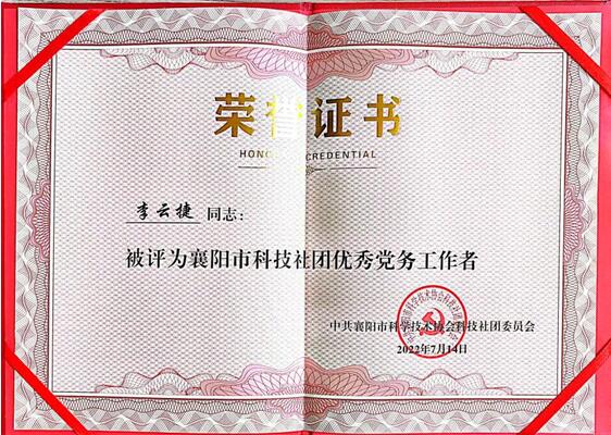 (通讯员 刘向红)7月25日,襄阳市科学技术协会科技社团党委召开襄阳市科技社团党建推进会,会上对市级优秀科技社团党组织和市级科技社团优秀党务工作者进行了表彰了,其中公司副教授、襄阳市营养学会副理事长李云捷,获得“襄阳市科技社团优秀党务工作者”称号。