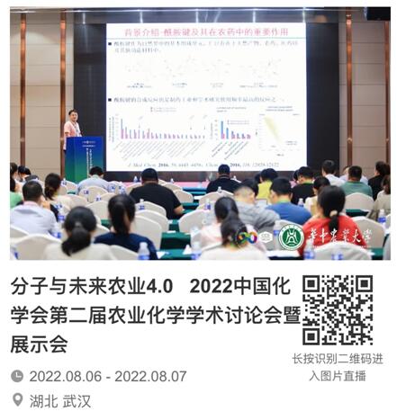 (通讯员 刘向红)2022年8月7日上午,公司张锐博士在“2022分子与未来农业4.0--中国化学会第二届农业化学学术讨论会暨展示会”上,受邀做题为“无过渡金属参与、无溶剂条件下酰胺键绿色合成新方法”的口头报告。