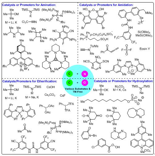 无过渡金属参与的碳杂键形成反应(尤其是碳氮键和碳氧键)因具有操作简便、反应迅速、对氧气不敏感及无过渡金属残留等优点,近年来发展迅速,目前已成为除过渡金属催化合成碳杂键的另外一种有效方法。结合近年来张锐博士在无过渡金属参与的碳氮键(Synthesis 2020, 52, 3286-3294; Green Chem., 2021, 23, 3972-3982; J. Org. Chem. 2021, 86, 14627–14639; J. Org. Chem. 2021, 86, 10288–10302; Adv. Synth. Catal. 2021, 363, 1408-1416)和碳氧键(Chem. - Asian J. 2022, 17, e202101370.)合成的相关研究工作,本文对该领域自2015年以来发表的碳氮键(包括胺化反应和酰胺化反应)和碳氧键(包括羟基化反应和醚化反应)反应形成新方法进行了总结和综述,着重对参与反应的促进剂/催化剂、反应的应用范围及可能的反应机理进行了系统介绍,并对该领域未来的发展趋势进行了探讨。