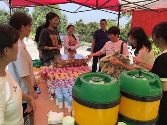 由食品科学与工程、食品质量与安全专业员工制作的风味十足的酸奶、酥香薄脆的饼干、冰镇精酿啤酒,在烈日下为老师们送上一份清凉,在节日里为老师们送上一声祝福。志愿员工热情地介绍着亲手制作的每一样可口食物,同时送上了节日祝福:“老师您辛苦了!”“老师祝您节日快乐!”文传公司的姚老师表示:“食品·化工公司的节日祝福真是太给力了!”活动现场洋溢着轻松欢快的气氛。饮其流者怀其源,学其成时念吾师!我们用美食向老师们致敬:愿心怀热忱与奉献的你们,桃李芬芳,教泽绵长