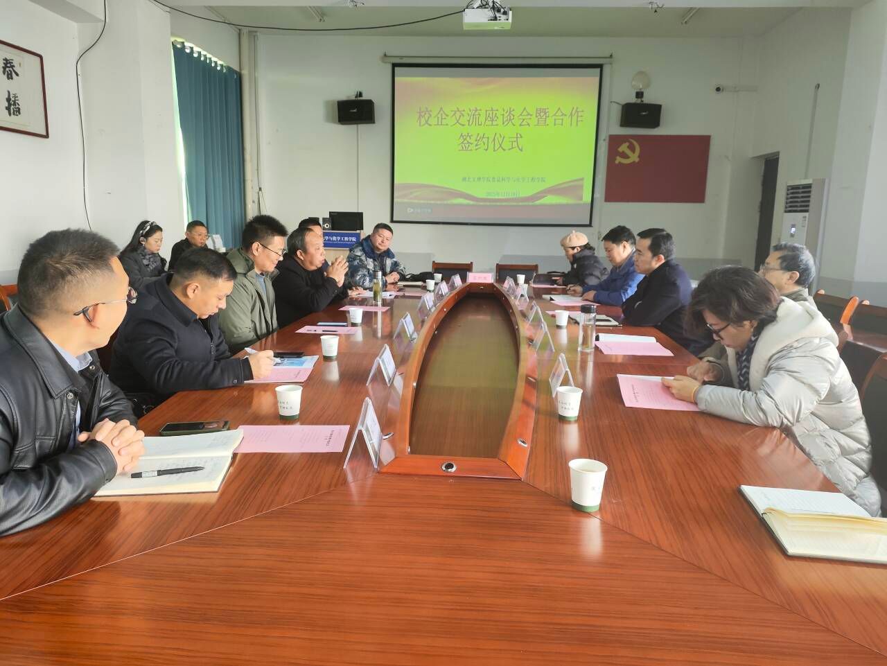 (通信员 王姗姗)12月18日,williamhill威廉希尔在N3-330会议室顺利召开校企合作座谈会暨框架协议签约仪式。湖北楚菊中药科技有限公司、湖北利他健康产业有限公司、湖北襄草源生态农业科技有限公司、襄阳市食惠多多科技有限公司、湖北神农智能农业科技有限公司等企业负责人,襄阳农科院专家、公司经理和平、副经理李玉奇、党委委员李云捷、教授代表孙永林等同志参加签约仪式。会议由公司党委书记储杰主持。