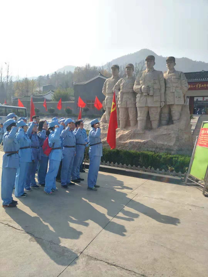 在红色文化基地讲解员的带领下,党员们先后参观了九口堰新四军五师司令部旧址、司令部驻地孙家大院以及红色记忆纪念馆。在红色记忆纪念馆,在李先念等革命先辈的巨型雕像前,在面对鲜艳的党旗,全体党员庄严地举起右手,重温入党誓词。沿着红军曾经走过的足迹,党员们通过阅读真实详细的革命文字记载,观看栩栩如生的先烈图片,徒步行走3.5公里山间小路,回忆着那段艰苦的红色岁月。