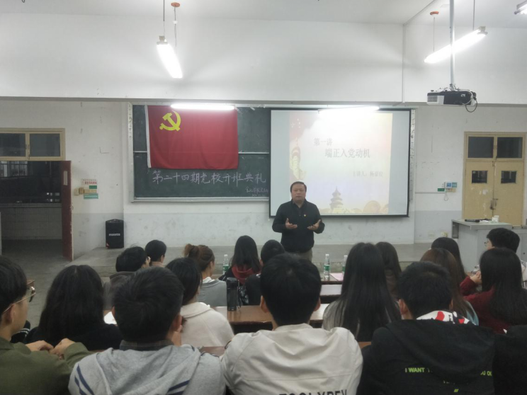 杨豪良发表开班寄语,并为党校学员作主题为《端正入党动机》的党课。他从“中国共产党并不抽象”出发,阐述了听党话、跟党走、知行合一的重要性。作为入党积极分子,要严格要求自己,保持自身的纯净性、先进性,要有信仰、有追求、有目标,全方面发展。希望同学们能够了解党,端正自身的入党动机,避免虚荣心理、盲目心理、投机心理,要从思想上入党。