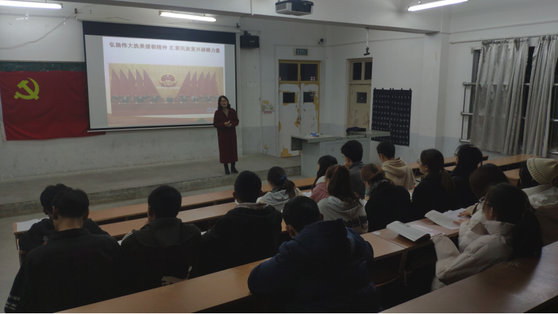 (通讯员 张帅军)11月20日晚,食品·化学公司员工党支部于N6阶梯04教室开展党课第四讲——弘扬伟大抗美援朝精神,汇聚民族复兴磅礴力量,马克思主义公司副教授熊明秀主讲。