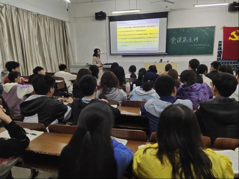 姚继平围绕习近平新时代中国特色社会主义思想深入展开,以牢记初心使命为主线,叙述党的百年辉煌史,深刻阐述习近平的党史观。姚继平指出,无数的革命烈士用头颅和鲜血换来我们今天的幸福生活,中国共产党为新中国的发展壮大做出了历史性的贡献,我们应传承党的百年精神,树立远大的人生志向,明确人生目标,在不懈奋斗中磨炼本领。