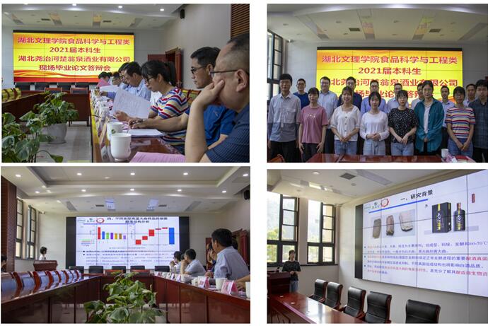 食品科学与工程2017级本科生雷炎、崔梦君、向凡舒和葛东颖及食品质量与安全2017级本科生王强等5 位同学分别报考了石河子大学和河北工程大学的硕士研究生,拟选择的导师均从事白酒或者果酒酿造相关领域的研究,因而上述同学向公司提升申请,希望自己的本科生毕业论文能围绕白酒酿造开展。针对这一情况,公司安排郭壮、张振东和侯强川3位博士作为5位同学的论文校内指导教师,并从湖北尧治河楚翁泉酒业有限公司选聘王文平、田龙新、周加平和刘菊珍为校外指导教师,围绕《基于宏基因组策略尧治河酒业高温大曲细菌多样性研究》、《尧治河酒业不同类型高温大曲真菌类群群落结构解析》、《基于电子鼻、电子舌和GC-MS联用技术酱香型白酒风味品质的评价》、《茅台和尧治河高温大曲细菌群落结构差异及功能预测研究》和《尧治河中高温大曲曲皮和曲心真菌多样性解析》等5个选题开展研究,并在酒业公司完成了现场答辩,实现了毕业论文的真题真做,得到了保康县科学技术和经济信息化局领导的肯定。在硕士研究生复试过程中,上述同学对面试组提出的白酒酿造相关领域的问题回答的游刃有余,最终被成功录取。