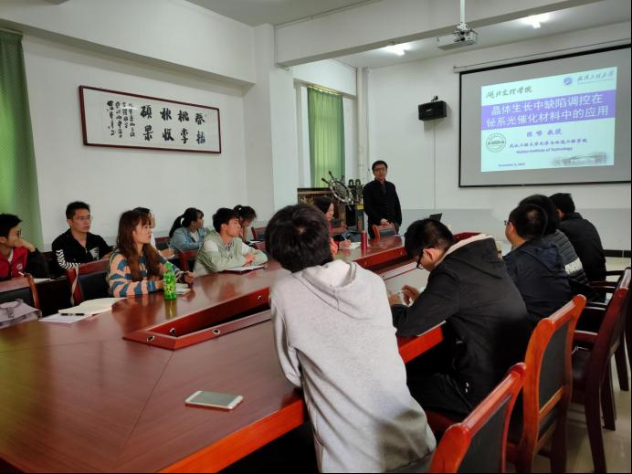 陈嵘教授在此次讲座中以“晶体生长中缺陷调控在铋系光催化材料中的应用”为主题,为大家讲解了铋系半导体新型光催化材料这一研究热点。在讲解的过程中,陈嵘教授以其课题组从事的研究工作为例,向大家介绍了其团队以掺杂来调控晶体缺陷,从而极大的提高光催化产生活性氧物种的能力,进而提升光催化活性这一研究成果。陈嵘教授结合自身科研体会告诉同学们:“研究结果并不是一蹴而就,更不是想想就能成功的。在漫长的获得成功的过程中,遇到挫折不能气馁和茫然,坚持、善于思考才能更快的走向成功”。戴高鹏教授就课题与陈嵘教授进行了交流。梁英处长希望同学们在今后的学习、研究中锻炼自己发现问题、分析问题、解决问题的能力,养成善于思考的好习惯。