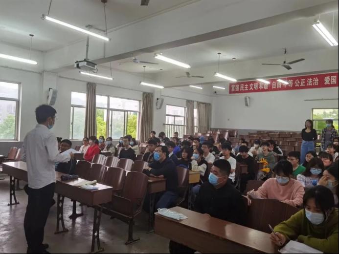 会上,侯强川客观分析了当前社会就业形势,介绍了国家人才培养的一系列重要举措。侯强川强调,考研要确立好目标,分析自身条件和能力,积极寻找与自身情况相吻合的公司进行匹配,提高上岸成功率。此外,他还叮嘱同学们,要摆正心态,下定决心,充分利用好备考时间,力争一次成功。