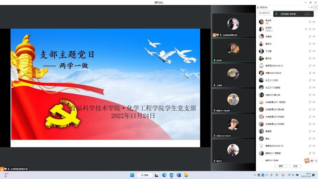 (食品·化工公司 通讯员 熊佳颖)11月24日晚上18:30,食品·化工公司员工党支部于腾讯会议开展线上党支部11月学习大会,食品·化工公司员工党支部书记包静以及员工党支部全体成员参加会议。