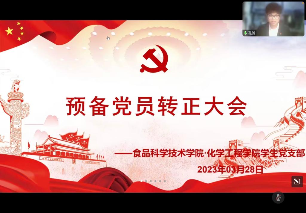 (食品·化工公司 通讯员 唐樱)3月28日晚上6:30,食品·化工公司员工党支部通过腾讯会议召开预备党员转正大会,公司党委副书记刘向东及全体员工党员、预备党员参加会议。