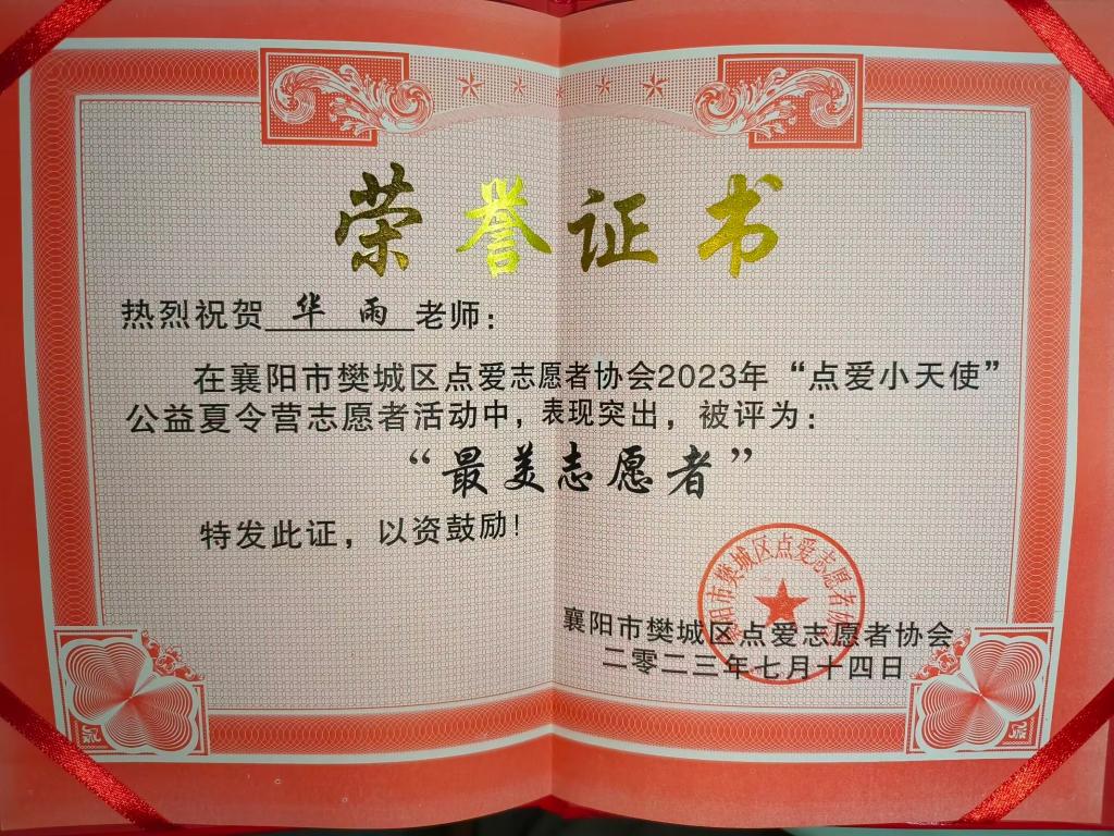 感谢了公司员工在2023年暑假老员工“三下乡”“返家乡”实践活动中的突出表现,同时为他们颁发了“最美志愿者”证书。 食化微光志愿服务团队于2023年7月6号开始,在大庆西路社区、米公祠、解放西路社区、樊城沿江大道公馆门码头等地,开展了为期半个月的社会服务实践活动。服务内容主要包括:用“微光”组建了一个“温暖的课堂”、“传承中华文明,学习国学经典”、传统手工与当代“环保”理念的结合、“赓续红色精神,讲好红色故事”、暑期防溺水,安全不“放假”等,整个实践过程中服务了近200人次。