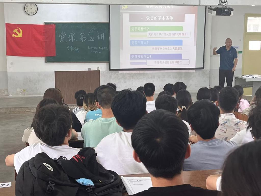 首先,王超以六个词“定位,关联,融合,发现,实现,呈现”为切入点,来引入本次党课的主题。王超向同学们介绍了党员的基本条件,让同学们明白了党员是什么、党员要干什么、党员要反对什么的道理。同时,讲述了党员的八大义务包含学习、工作、奉献、守纪、组织、治党、宗旨以及道德,并对每一个义务都仔细地进行案例的讲解。王超将这八大义务比作一把“钥匙”,为同学们向党组织靠拢指明了努力的方向。“没有义务的地方,就没有权利”,作为一名入党积极分子,我们首先应该做的就是履行自己学习的义务,不断的从思想学习中提升自己的党性修养,认真履行自己的义务,规范自己的言行,自觉维护党和人民的利益。