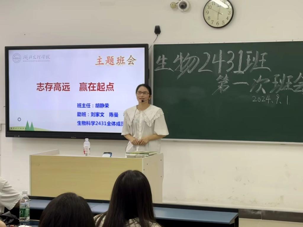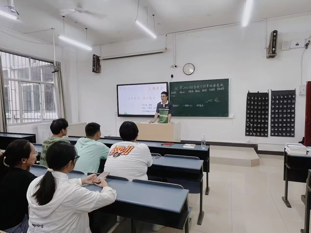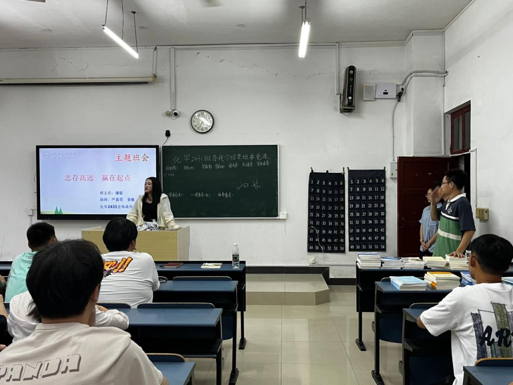 生物科学2431班班主任胡静荣、化学2431班班主任潘聪向同学介绍公司概状、专业介绍,同时对新同学开展防诈骗防溺水等安全教育。随后员工依次进行自我介绍,上台发表班委竞选宣言。