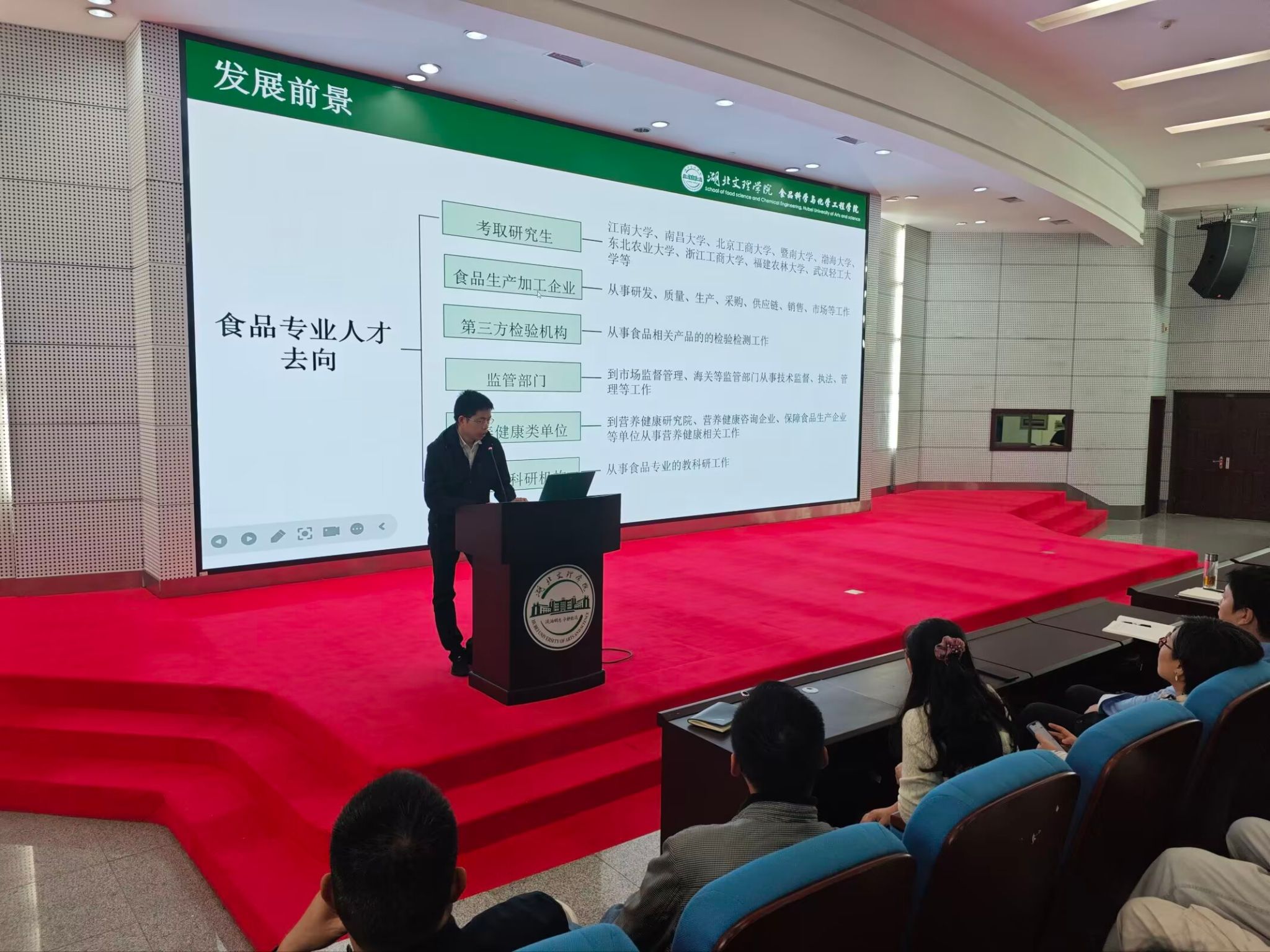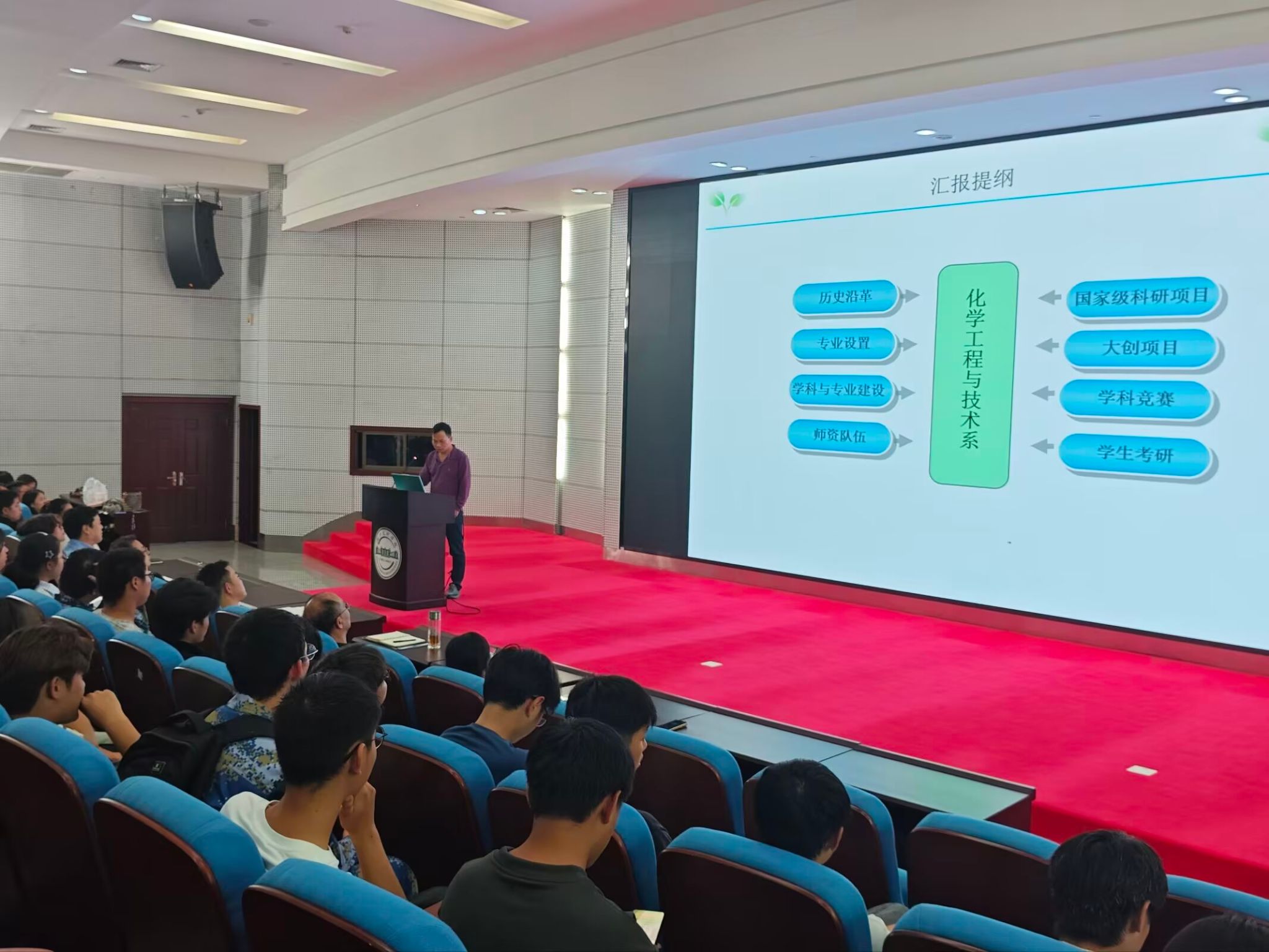 接下来的专业特色与优势介绍环节是本次典礼的重点。食品科学与工程系和化学工程与技术系老师先后登台,利用精美的PPT,向新生们系统阐述了各自专业的培养目标、强大的团队队伍、科学的课程体系、鲜明的行业优势以及广阔的发展前景。他们还生动分享了往届优秀员工的成才案例,以榜样的力量激发新生的学习热情,增强了同学们对所学专业的认同感与归属感。
