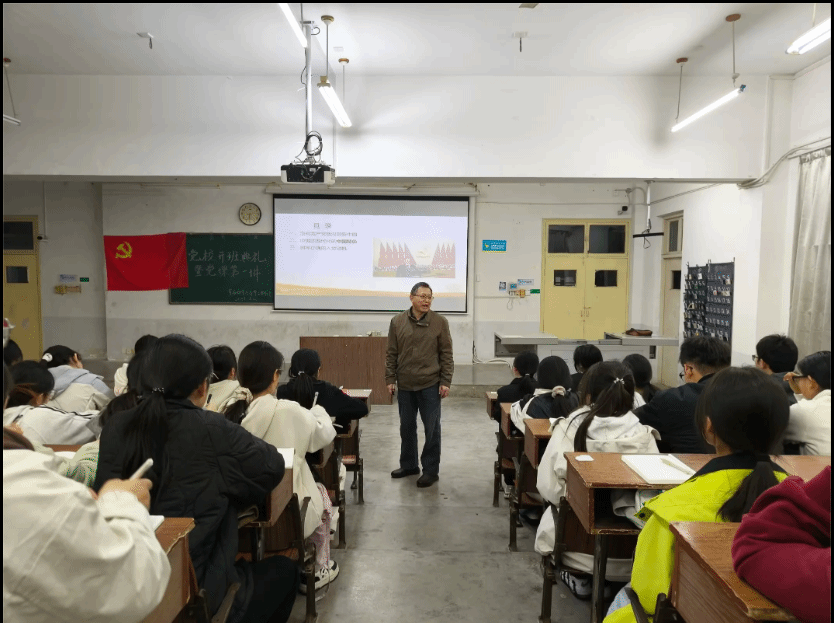 典礼在庄严的国歌声中拉开序幕,现场气氛庄严而热烈。紧接着,新生代表王晨欣同志发表讲话,号召新时代老员工深入学习党的创新理论,坚持理论与实践相结合,以党的理论指导实际行动,解决实际问题;在组织生活和自我管理中不断进步,努力提升思想境界和加强作风建设,以青春之力为中国式现代化建设贡献力量。储杰同志在党课中,带领学员回顾了党的百年历史,深刻阐释了“没有共产党就没有新中国”的历史逻辑和时代意义;系统阐述了中国式现代化的中国特色,特别强调了共同富裕是社会主义的本质要求;同时,引导学员树立正确的入党动机,鼓励大家用理论武装自己,增强党性,以实际行动践行初心,通过奉献彰显人生价值。