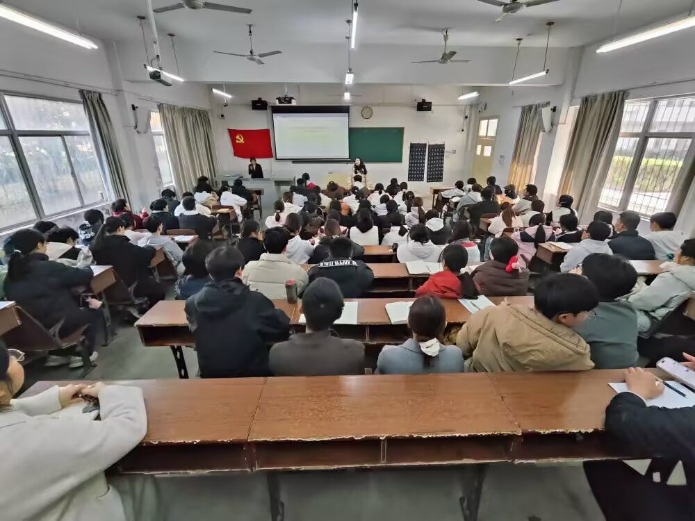 大会由王飞同志主持,开场即组织全体成员奏唱国歌。全体成员着装整齐、肃穆站立,激昂嘹亮的国歌声在教室中久久回荡,为整场学习活动营造出庄重严肃的浓厚氛围。随后,在朱程程同志的带领下,全体成员面向鲜艳的党旗,庄重地举起右拳重温入党誓词,那铿锵有力的誓言,如同一座灯塔,砥砺着党员的初心,凝聚起强大的奋进力量。紧接着,辅导员向琼老师围绕《中国共产党第二十届中央委员会第四次全体会议公报》《王忠林主持召开省委常委会(扩大)会议 迅速掀起学习党的二十届四中全会精神热潮 推动全会精神在湖北不折不扣落地生根》等两份重要文件,进行了深入浅出、重点突出的解读。大会着重强调,学习宣传贯彻党的二十届四中全会精神是当前和今后一个时期的一项重要政治任务,号召全体成员原原本本、原汁原味地学,紧密联系实际学,带着问题深入学,全面精准把握全会的重大理论观点、战略思想和工作部署,真正做到学深悟透、入脑入心、融会贯通。